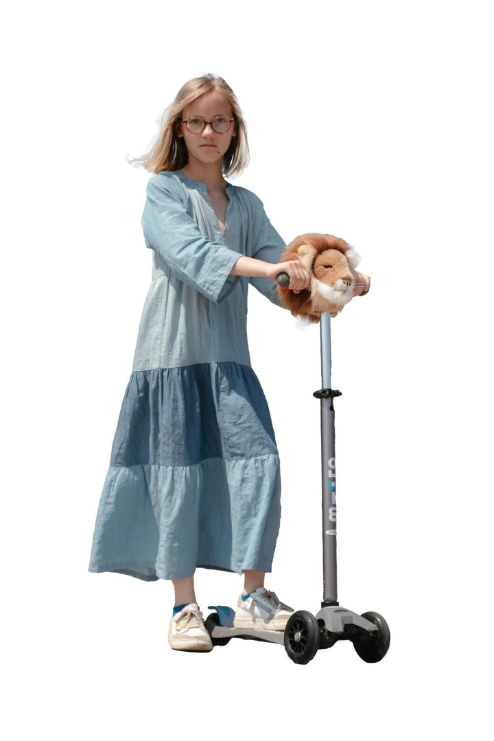 Convierte tu patinete o bici en un verdadero amigo con esta divertida cabeza de animal para el manillar. ¡A este pequeño león le encantaría acompañarte en cada viaje!