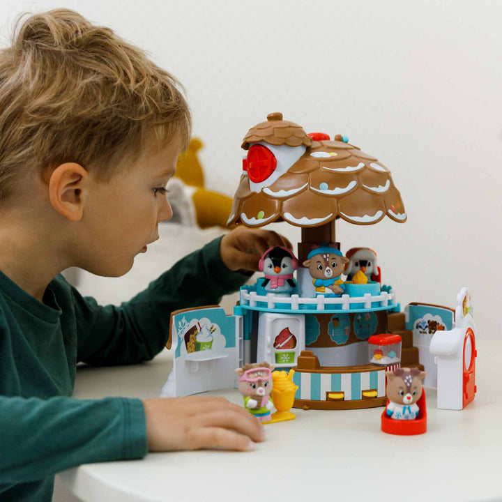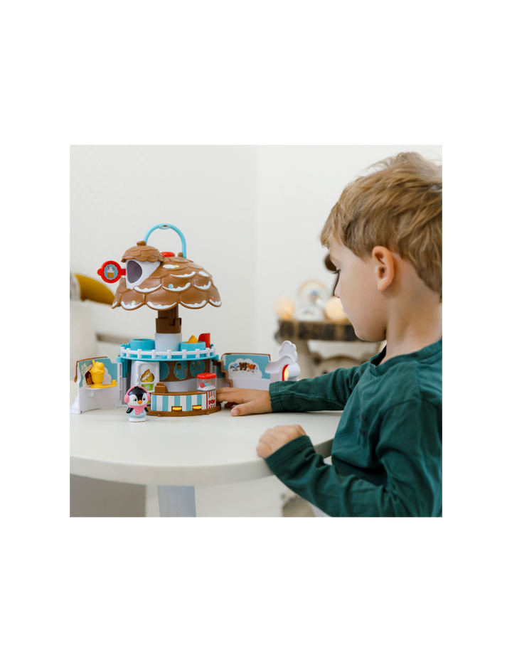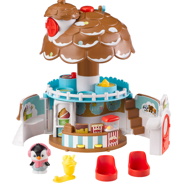 Un restaurante encantador: Al abrir el piñón, los niños encontrarán un espacio acogedor donde los personajes pueden disfrutar de su helado favorito.