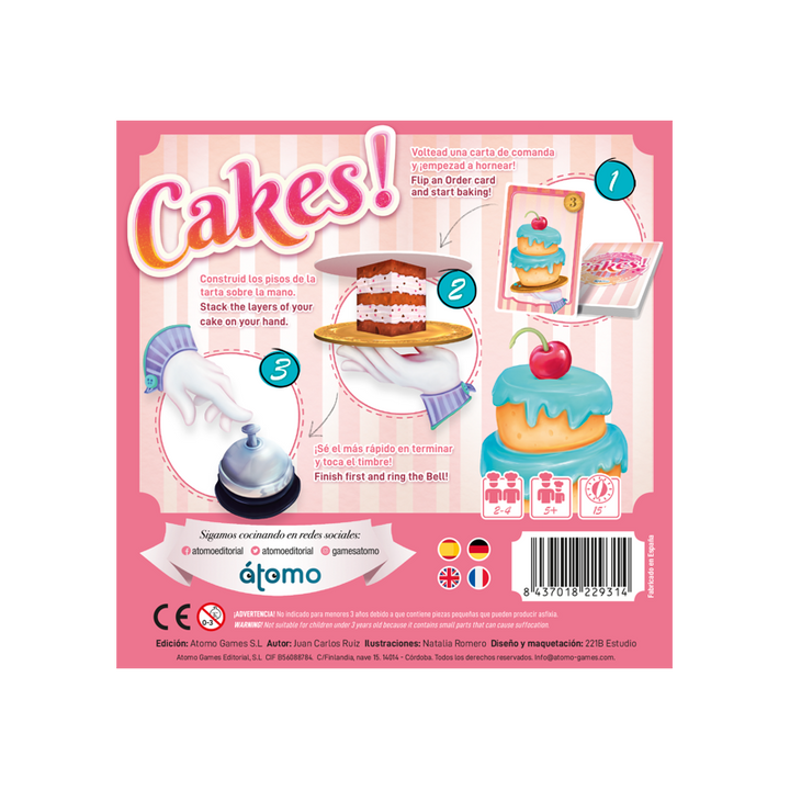 ¿Quién será el pastelero más rápido? ¿Y el más habilidoso? Cakes! nos pondrá a prueba a grandes y pequeños, niños, niñas o adultos, pudiéndose adaptar a cada jugador en función de su edad, destreza motriz y sentido del equilibrio, lo que lo convierte en un juego de mesa perfecto para jugar en familia.