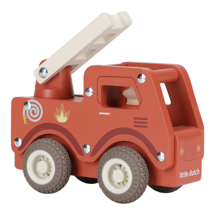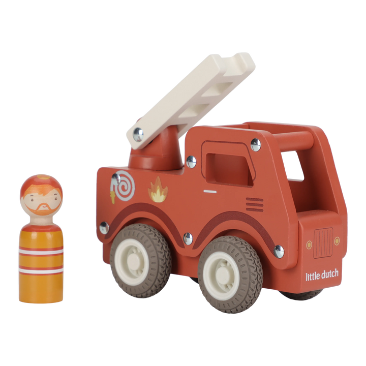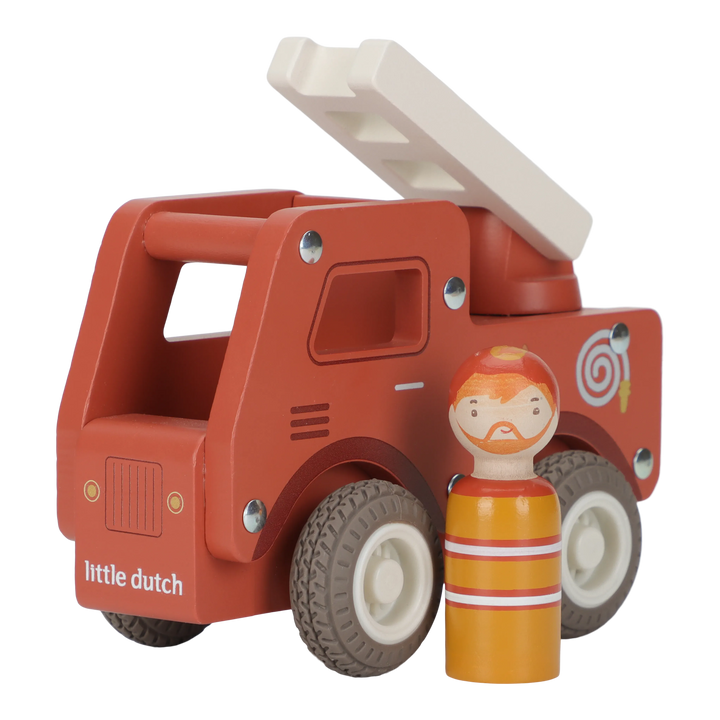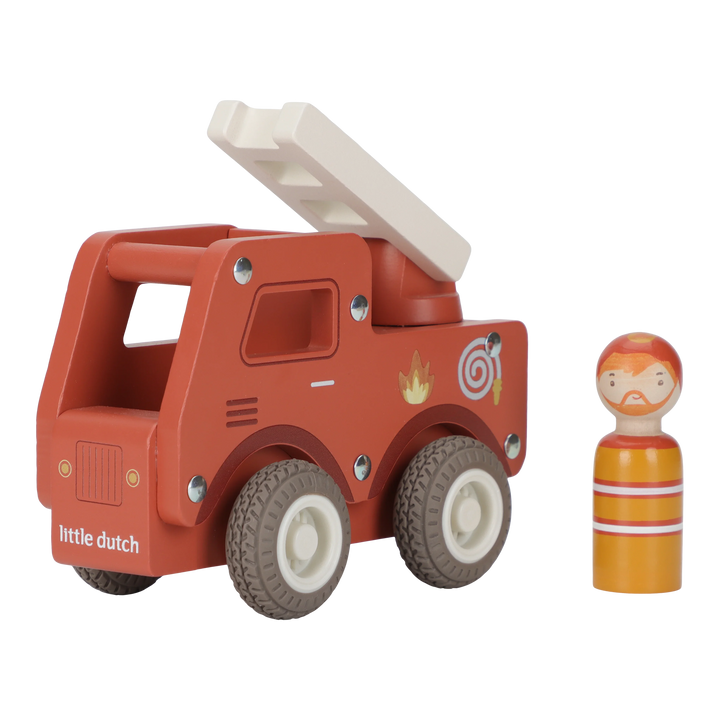 ¡Bomberos listos! Apaga el fuego y salva el día con este robusto camión de bomberos de madera. La escalera móvil facilita cualquier misión de rescate, mientras que las ruedas de goma garantizan un desplazamiento suave. Ayuda a los animales a bajar de los árboles altos y asegúrate de que todos estén a salvo. El set incluye un valiente bombero siempre listo para ayudar. ¡Perfecto para combinar con la estación de bomberos y disfrutar de aún más acción!