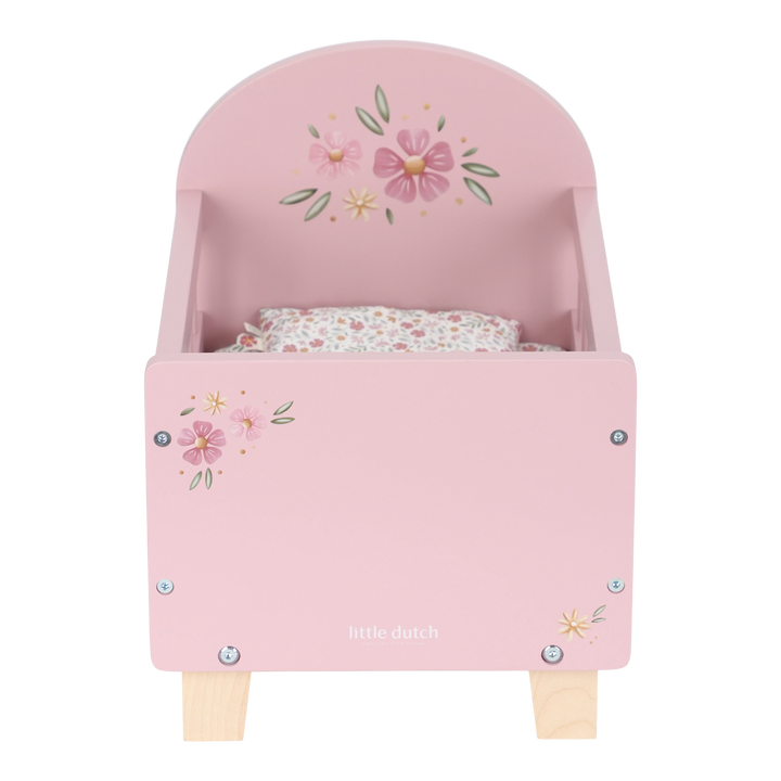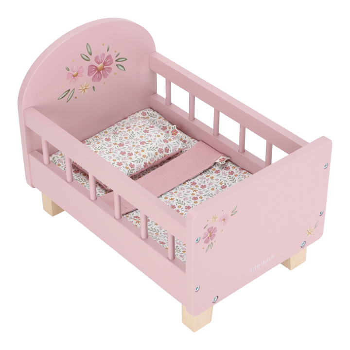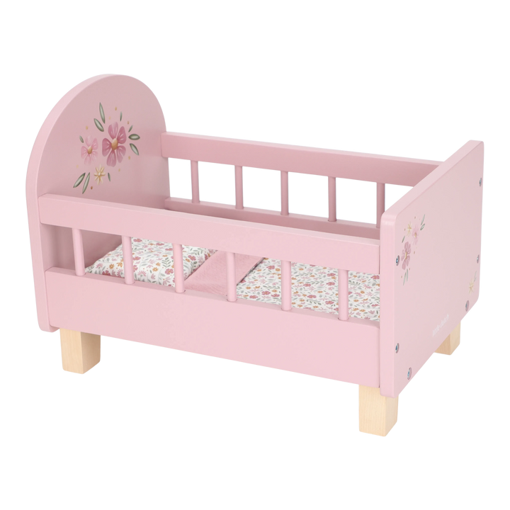 Dile buenas noches a tu adorable muñeca. Arropa a tu muñeca favorita, dale un beso y no olvides el cuento para dormir. Esta adorable camita está diseñada para que cuides de tu muñeca como si fueras un verdadero padre o madre. A los niños les encanta imitar a sus padres y jugar a ser mamá o papá cuidando a sus muñecas y peluches. El juego de roles fomenta la creatividad y la imaginación, y esta cama para muñecas es el juguete perfecto para fomentarlas. Está hecha de madera resistente y, para que sea aún más cómoda, incluye una almohada, una manta y una sábana con el encantador diseño de Flores y Mariposas. ¿A Anna, con su falda a juego de Flores y Mariposas, a Sophia o a Jake, a quien tu pequeño elegirá para dormir en esta adorable cama?