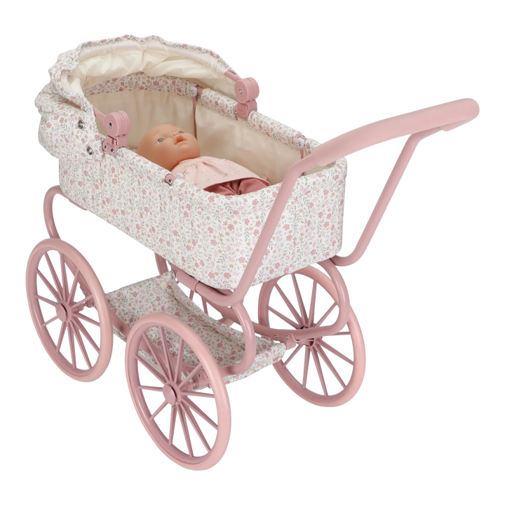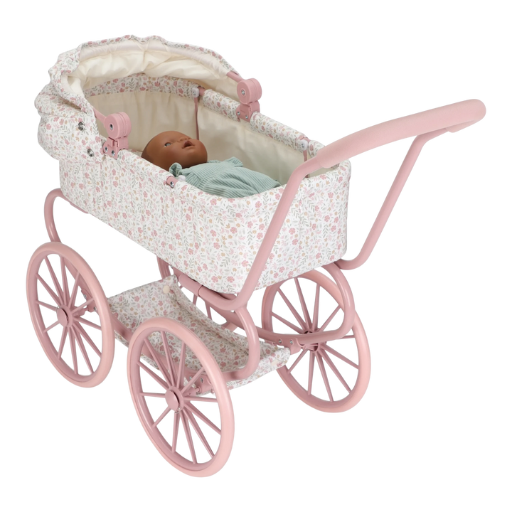 ¡Disfruta de encantadores paseos con este robusto cochecito de metal para muñecas y dale a tu muñeca el paseo de su vida! Gracias a sus cuatro ruedas grandes, este cochecito se mueve de forma suave y estable, perfecto tanto para interiores como para exteriores. En la parte inferior, encontrarás una práctica cesta para guardar los accesorios de tu muñeca siempre a mano.