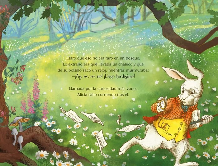 Adéntrate en la madriguera del conejo y acompaña a Alicia en sus mágicas aventuras con este precioso libro ilustrado e interactivo, con cartas para abrir y leer.