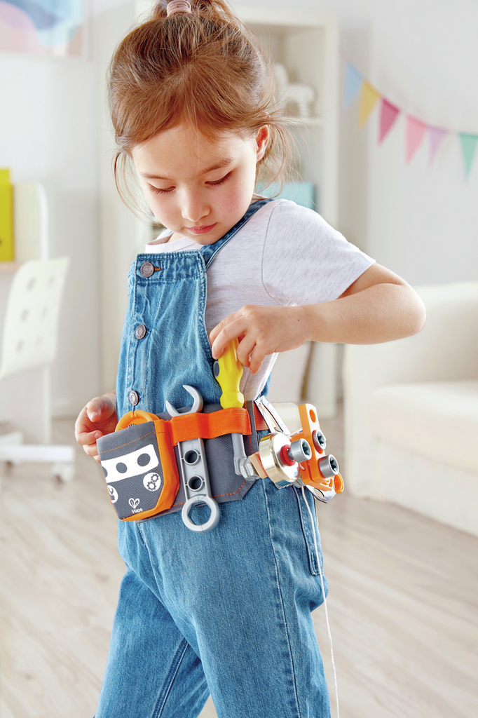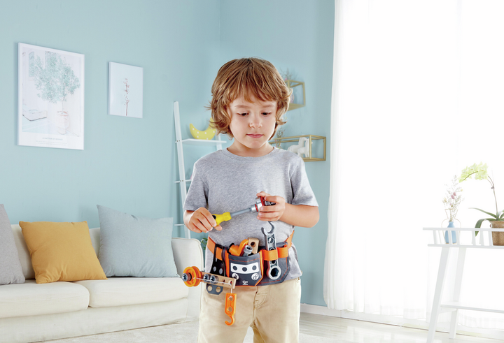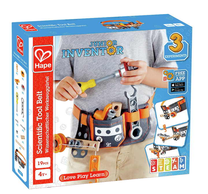 ¡Todo inventor debe tener sus herramientas a mano! Con sus bolsillos para herramientas y piezas, construye tus experimentos directamente en el cinturón.