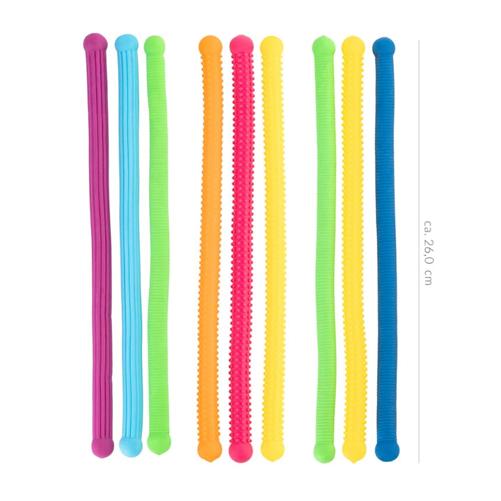 Cuerdas sensoriales de silicona extensibles con diferentes texturas. El paquete contiene 3 cuerdas.