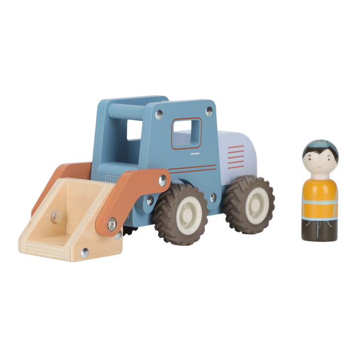 ¡Siempre hay trabajo por hacer en la obra! Con esta excavadora de madera, puedes levantar cargas sin esfuerzo gracias a su pala grande. La robusta miniexcavadora rueda suavemente gracias a sus ruedas de goma e incluye un obrero de la construcción de madera. Ya sea que juegues en interiores o exteriores, esta excavadora de juguete te brindará horas de diversión. Conduce hasta el montón de arena, cava un hoyo profundo y retira toda la arena con la pala grande. ¿Terminaste de cavar? ¡Combina esta excavadora de madera con otros vehículos de construcción para vivir aún más aventuras en la obra!