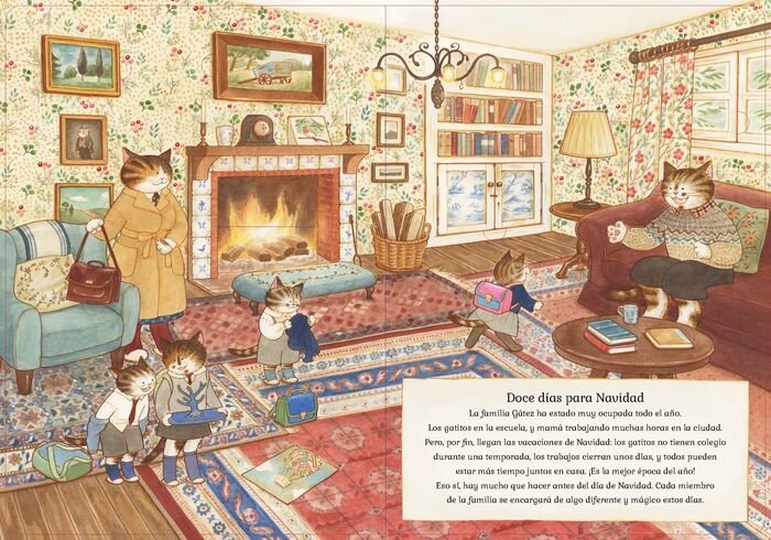 En esta ocasión, la familia de gatos, gatitos y abuelos felinos se preparan doce días antes del día de Navidad haciendo dulces navideños, decorando la casa y cantando en su pueblo, de casa en casa. ¿Qué sorpresas encontraremos en las páginas navideñas?