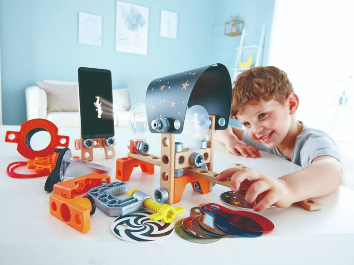 Explora el mundo de la ciencia óptica y la luz con este conjunto de ocho experimentos. ¡Perfecto para jóvenes científicos e inventores!
