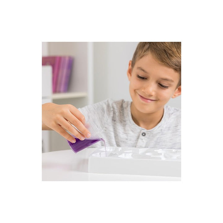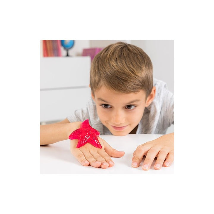 Mezcla el polvo de gelatina 100 % natural con glicerina, base espumosa, perfume y colorantes; luego, añade agua tibia y remueve durante unos segundos. Vierte la preparación en un molde y deja enfriar 30 minutos antes de desmoldar el jabón. Te encantará lavarte las manos gracias a su textura tan divertida.