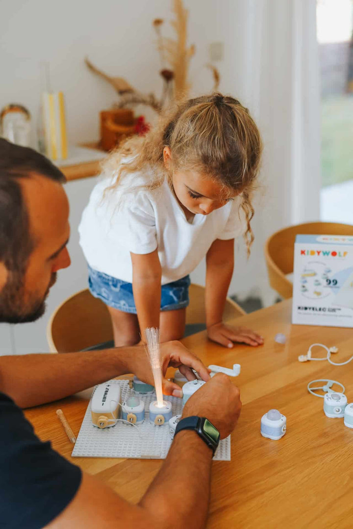 ¿Y si la electricidad se convirtiera en un juego de niños? Con KIDYELEC, los niños descubren el fascinante mundo de los circuitos eléctricos construyendo sus propios circuitos. Conectan, prueban y experimentan... Diseñado para despertar la curiosidad y el gusto por la ciencia, este ingenioso kit convierte cada experimento en una pequeña victoria. Una primera exploración práctica y divertida, en la que se aprende haciendo y, sobre todo, divirtiéndose.