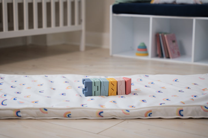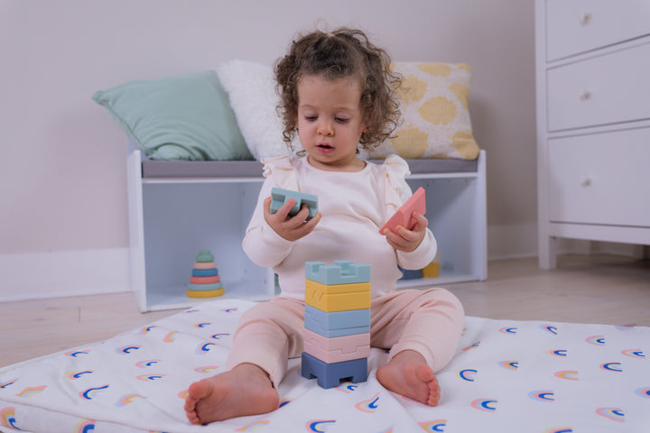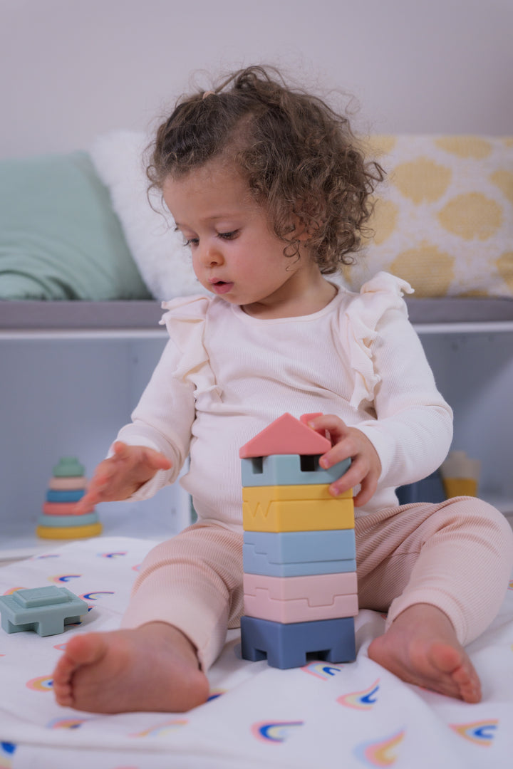 Diseñado para despertar su curiosidad y estimular su creatividad. Este juego de bloques de construcción de colores pastel con diferentes formas es perfecto para las manos pequeñas y las grandes experiencias de juego. Fáciles de manipular y suaves al tacto, los bloques están especialmente diseñados para estimular la motricidad fina y la coordinación óculo-manual. Se pueden apilar unos sobre otros para formar una torre o una casa, ofreciendo infinitas posibilidades de juego.