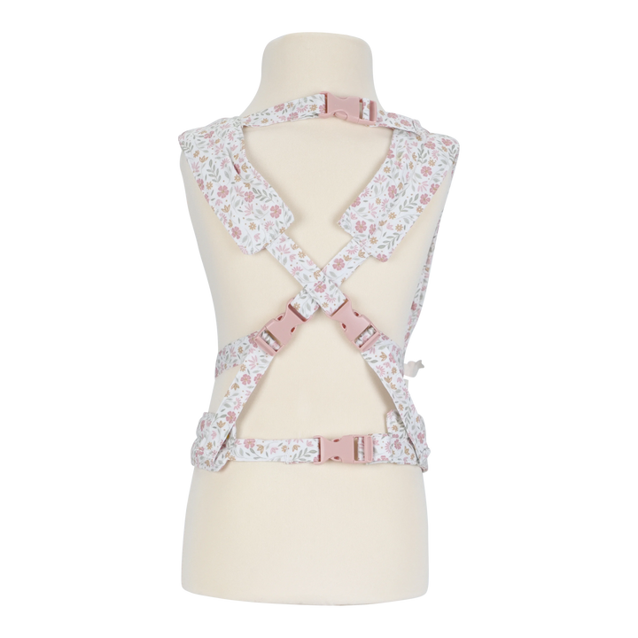 Embárcate en una aventura con este cómodo portamuñecas y lleva a tu bebé a todas partes. Las correas de hombro ajustables y acolchadas y el resistente cinturón lumbar garantizan que tu muñeca esté sentada de forma segura y cómoda. Lleva a tu muñeca cerca de ti o mirando hacia delante, según tus preferencias. Diseñado con el suave y dulce estampado Soft Flowers para un look elegante. Ideal para juegos de rol e imitar el cuidado de bebés reales, manteniendo las manos libres.