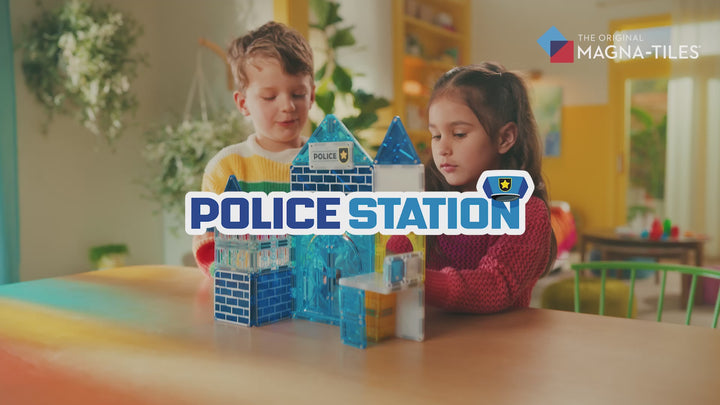 ¡Luces que destellan, sirenas que retumban, y el set de estación de policía MAGNA-TILES está listo para salvar el día! Observa a tus pequeños héroes correr al rescate con el chasis retráctil, que añade diversión a toda velocidad a la hora de jugar. Los accesorios intercambiables para vehículos y las figuras magnéticas actualizadas ofrecen infinitas oportunidades de juego creativo, permitiendo a los niños mezclar, combinar y personalizar sus personajes y vehículos. Introduce nuevos elementos sensoriales en el juego con el mosaico de luz y sonido, con luces intermitentes y sirenas para una auténtica experiencia de lucha contra el crimen.