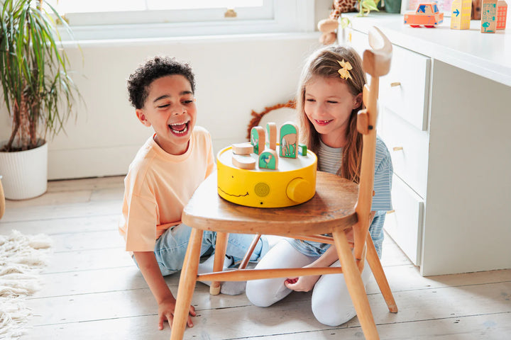Desde un gracioso cacareo hasta un potente mugido, ¡la granja está llena de sonidos! Coloca los animales en el escenario y escúchalos cobrar vida con sus graznidos únicos. Mézclalos y combínalos para crear tu propia sinfonía en la granja. ¿Quieres aún más diversión en la granja? ¡Dale de comer a tus amigos animales y mira qué pasa!
