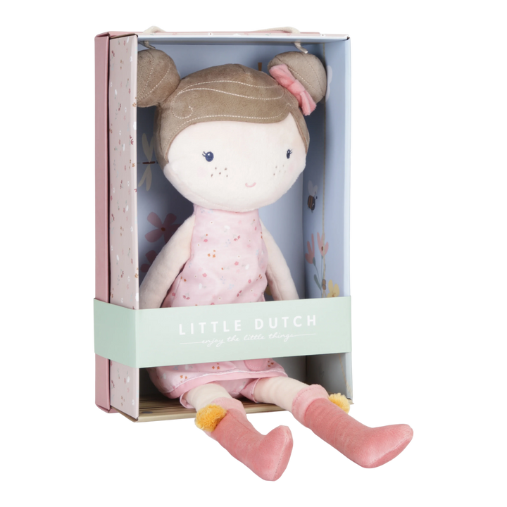 Conoce a la encantadora Rosa. Esta muñeca de peluche de Little Dutch con un lindo vestido quiere ser abrazada. Rosa puede sentarse y le gusta ir contigo de paseo.