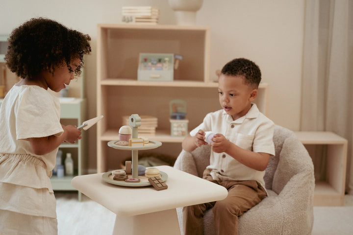 ¡Un ingrediente perfecto para cualquier cocinita! Con esta báscula de madera, los pequeños panaderos y chefs pueden pesar sus ingredientes con precisión. Coloca los productos en la báscula y observa cómo la aguja indica el peso. La báscula tiene botones reales con ilustraciones, lo que hace que jugar en la cocina sea aún más realista. ¡Perfecta para combinar con la cocina y el set de repostería para una diversión sin límites!