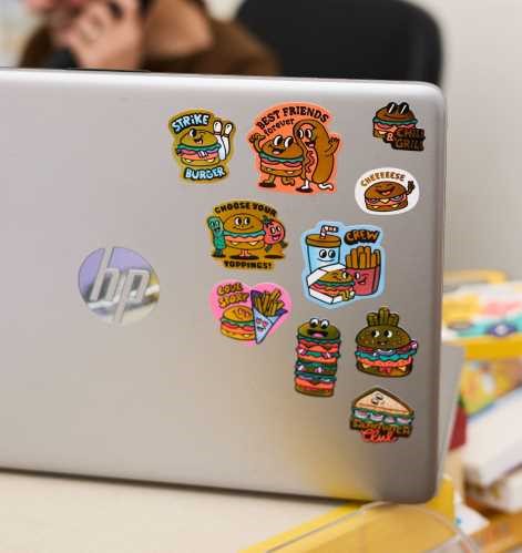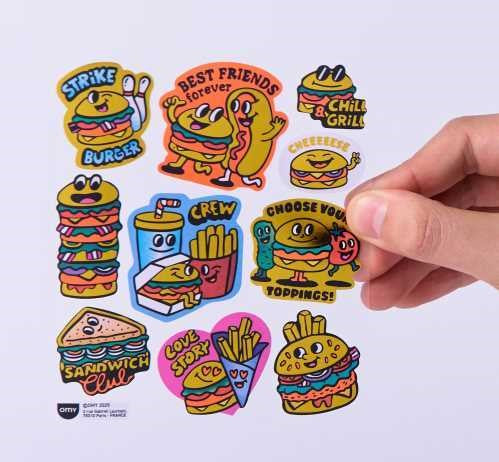Holográficas, fluorescentes y brillantes, nuestras pegatinas están disponibles en una gran variedad de tamaños, formas y temas.