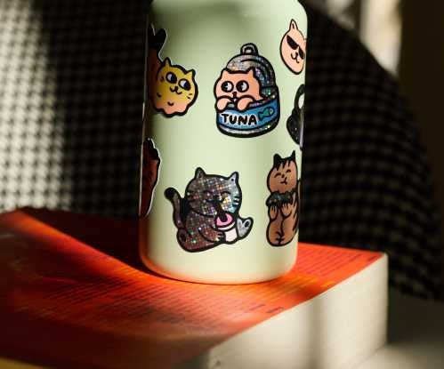Holográficas, fluorescentes y brillantes, nuestras pegatinas están disponibles en una gran variedad de tamaños, formas y temas.