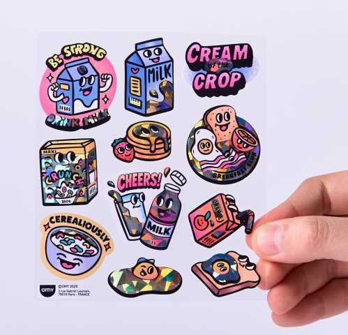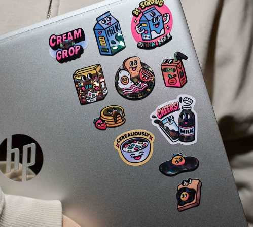 Holográficas, fluorescentes y brillantes, nuestras pegatinas están disponibles en una gran variedad de tamaños, formas y temas.