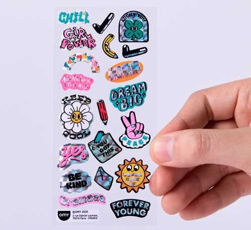 Holográficas, fluorescentes y brillantes, nuestras pegatinas están disponibles en una gran variedad de tamaños, formas y temas.
