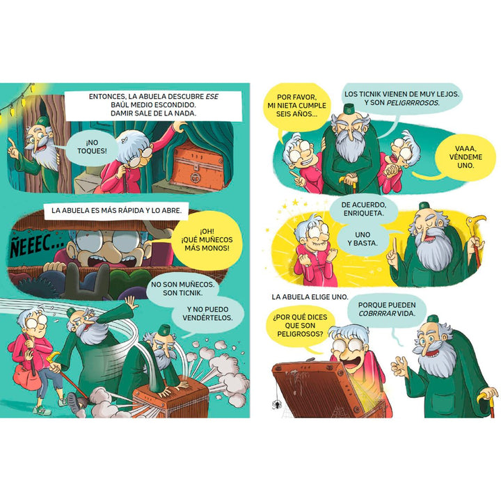 En la tienda de Damir hay un baúl escondido, lleno de muñecos. Son unos peluches tan monos que la abuela Enriqueta ha querido regalar uno a Tina, su nieta. Sin embargo, el muñeco esconde algunas sorpresas… Hay que seguir tres normas para que todo vaya bien. ¿Y si la niña olvida las normas?